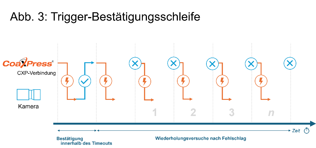 Hinweis: Euresys CoaXPress-Framegrabber ermöglichen über die GenApi-Funktion CxpTriggerMaxResendCount auch eine Konfiguration der maximalen Anzahl von Wiederholungsversuchen.