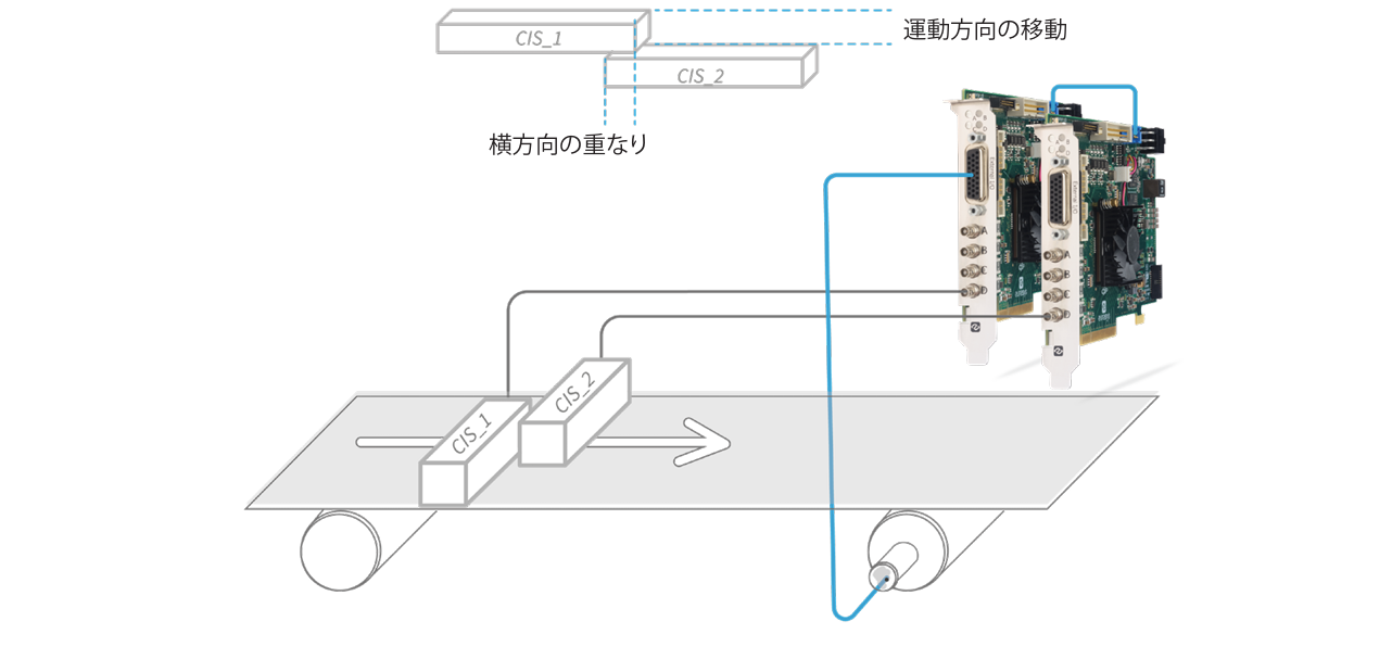検査対象のエリア全体を網羅するために複数のCISが必要となる場合、これらは通常互い違いに設置されます。これは、並んで設置されたCISの間でピクセルが損失するのを回避するためです。